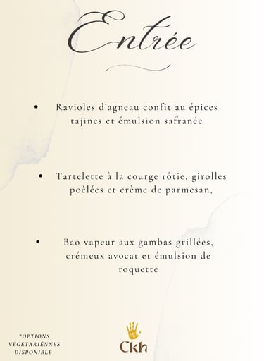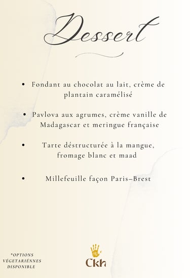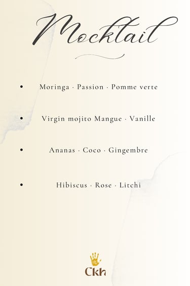 1 entrée/1 plat/1 dessert/1 mocktail (offert)